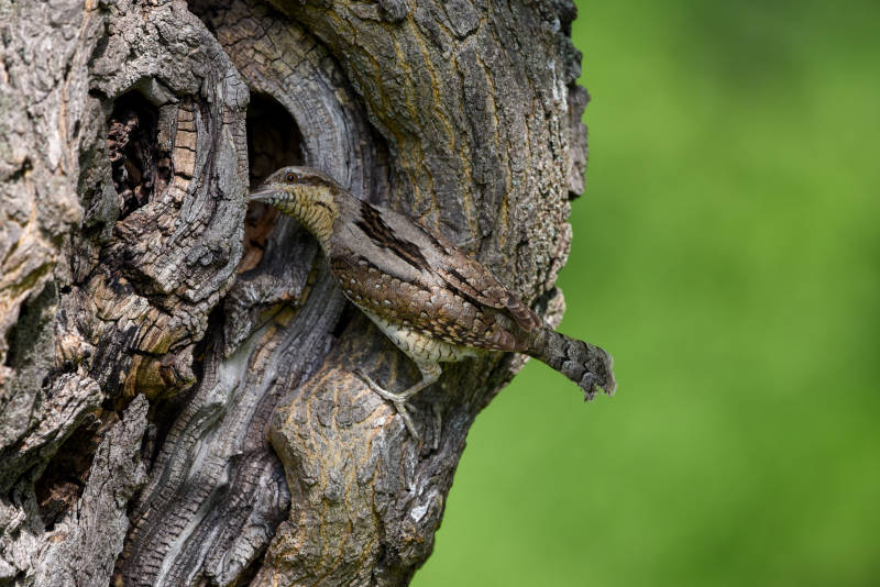 Deze middag gaan we op zoek naar de koekoek. Ondanks de verwoede poging van Ilyan om hem met de geluiden te lokken, laat hij zich niet zien. Niet zo erg, want vlak voor mij zit een verliefd bijeneter paartje die druk in de weer zijn: eten en paren. Vervolgens nog weer even proberen om de draaihals te lokken. Deze keer met succes. Wat een bijzondere vogel! Een zeer goede schutkleur zodat hij bijna niet te zien is tegen de achtergrond van de boom. Vanwege het opkomend onweer moeten we haastig deze plek verlaten. Een mooie dag met een goed gevulde geheugenkaart.